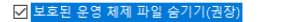 (3) 폴더 옵션에서 해당 옵션을 다시 활성화하면 보호된 파일들이 다시 숨겨져서 보이지 않게 된다.