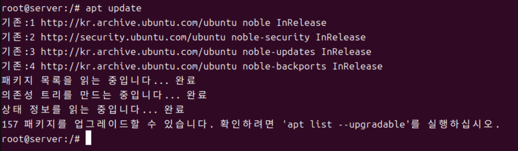 (4) apt update 커맨드로 설정한 내용을 적용한다.