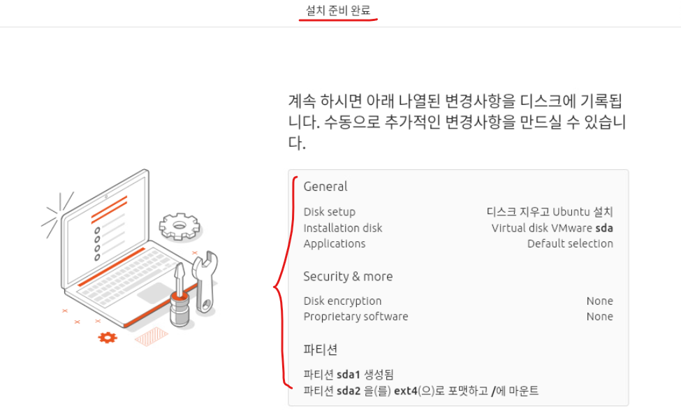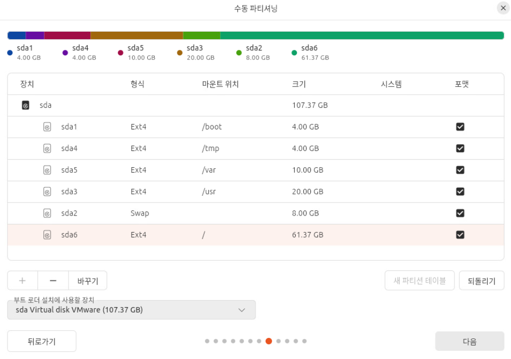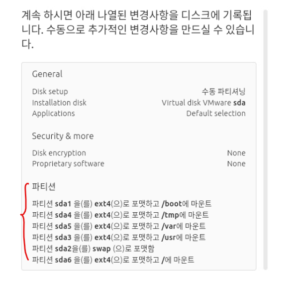 (9) 파티션 작업 내역을 설치 마지막 전에 확인한다.