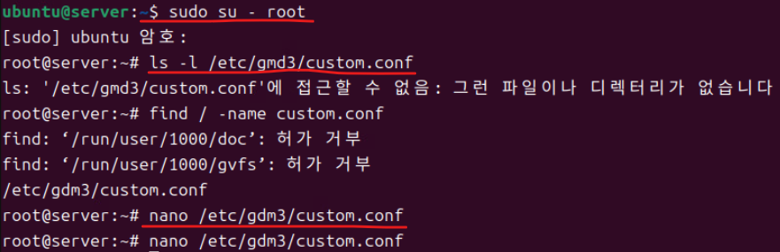 (6) 이후에 nano 에디터로 /etc/pam.d/gdm-password 파일을 열고 3번 라인을 주석 처리한다.