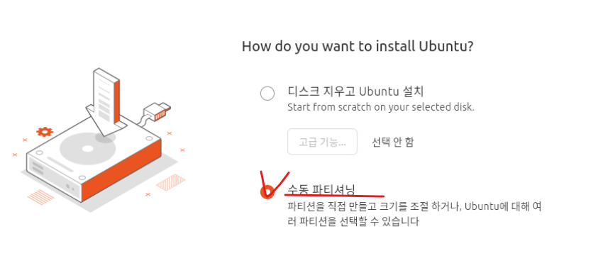 (2) 이번 설치는 수동 파티셔닝으로 진행한다.