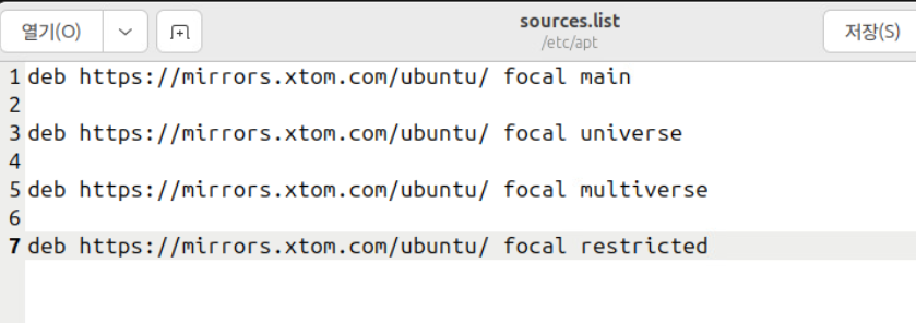 (3) geditor를 열고 위와 같은 내용을 입력한 뒤 저장한다. 이후 apt update로 내용을 반영한다.