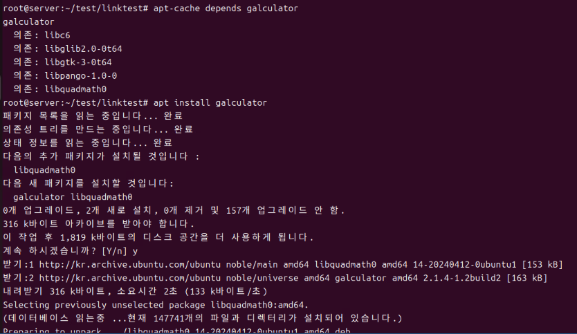 (1) apt-cache depends galculator 커맨드로 galculator를 설치하기 위해 필요한 의존성을 확인할 수 있다.]
