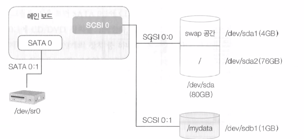 - 하드 디스크를 추가하면서 /dev 디렉터리를 기준으로 새로운 파티션이 생성된 것을 확인할 수 있다.