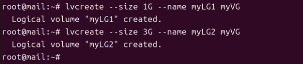 - myVG라는 볼륨 그룹 내에서 각 사이즈에 맞는 논리 볼륨을 생성한다.