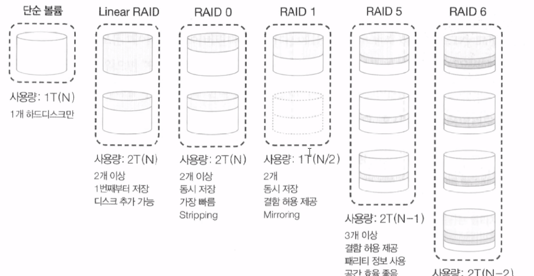 (1) LVM은 논리적인 하드 디스크 관리자라는 의미를 갖고 있는데 RAID와 비슷해 보이지만 더 많은 장점을 갖고 있다.