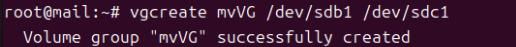 (7) vgcreate myVG /dev/sdb1 /dev/sdc1 (볼륨 그룹 생성)
