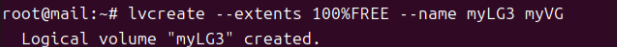 (10) lvcreate --extents 100%FREE --name myLG3 myVG