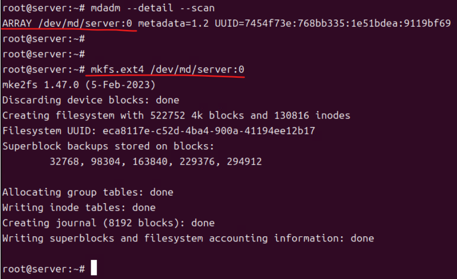 > mkfs.ext4 /dev/md5