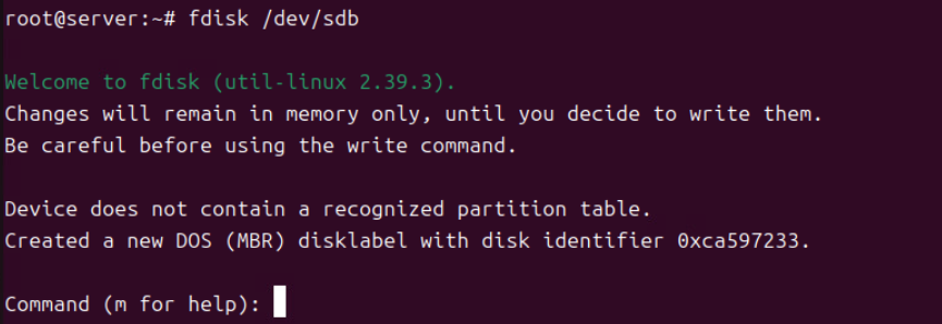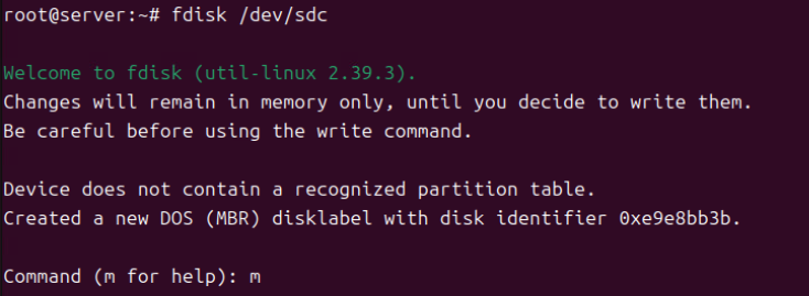 (4) m 커맨드를 줘서 파티션 테이블을 생성한다.