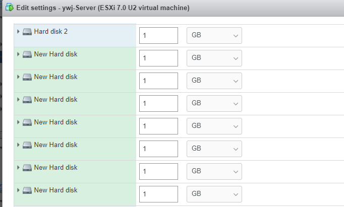 (1) 실습 이전 7개의 하드 디스크를 Setting 한다.