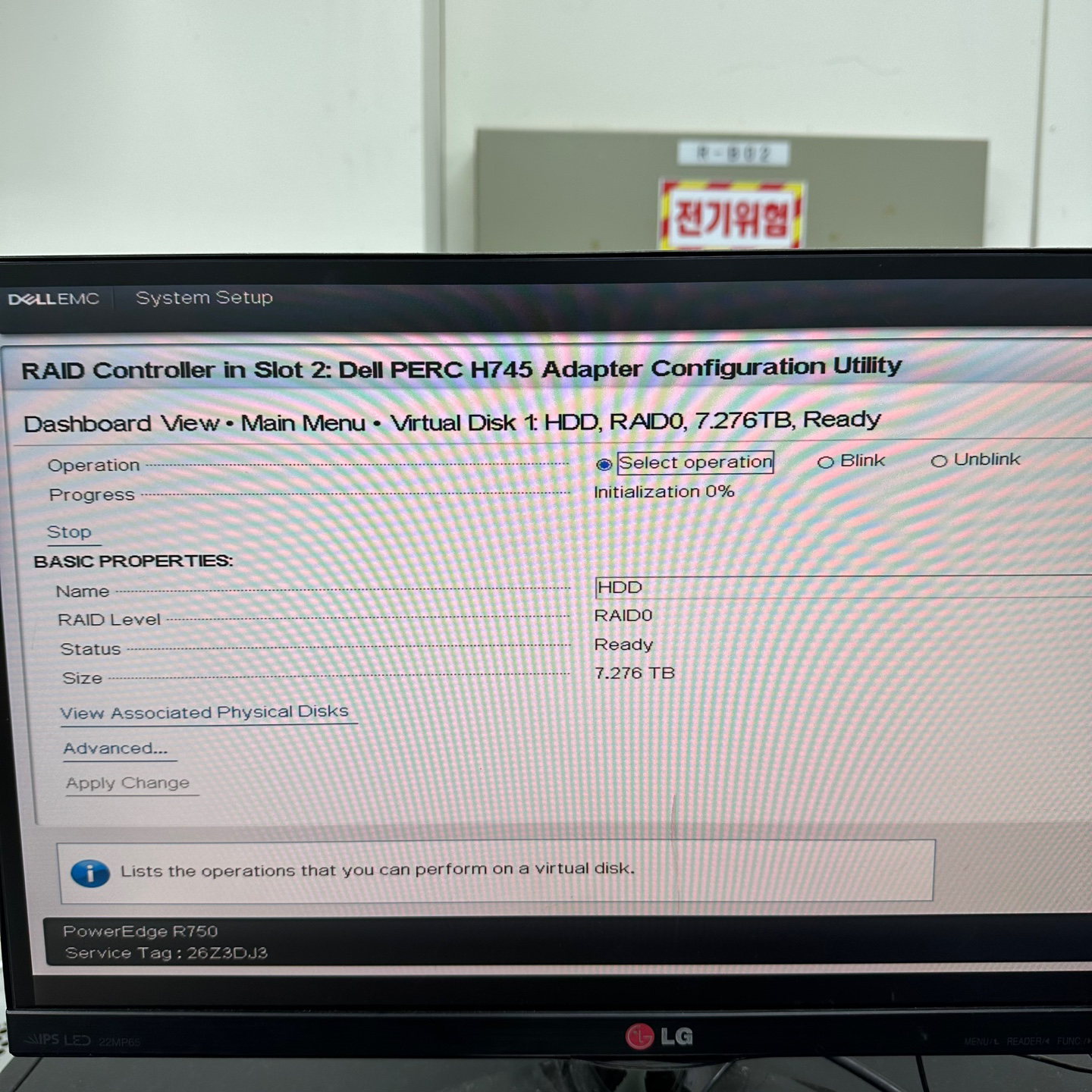 (12) HDD의 경우 실습 서버 기준 용량이 8TB, 하드 디스크 드라이브인 점을 감안하면 초기화 작업 시간은 약 7~8시간이 소요될 것으로 예상된다.