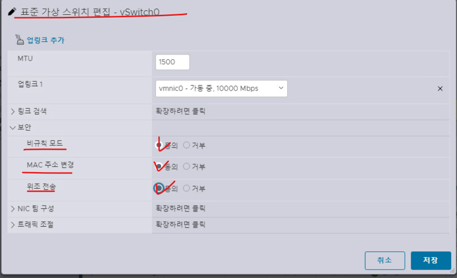 - vmxnet3 : vmxnet2 어댑터를 기반으로 한다. (가급적이면 vmxnet3 어댑터를 사용한다.)