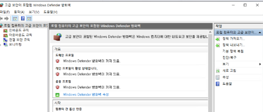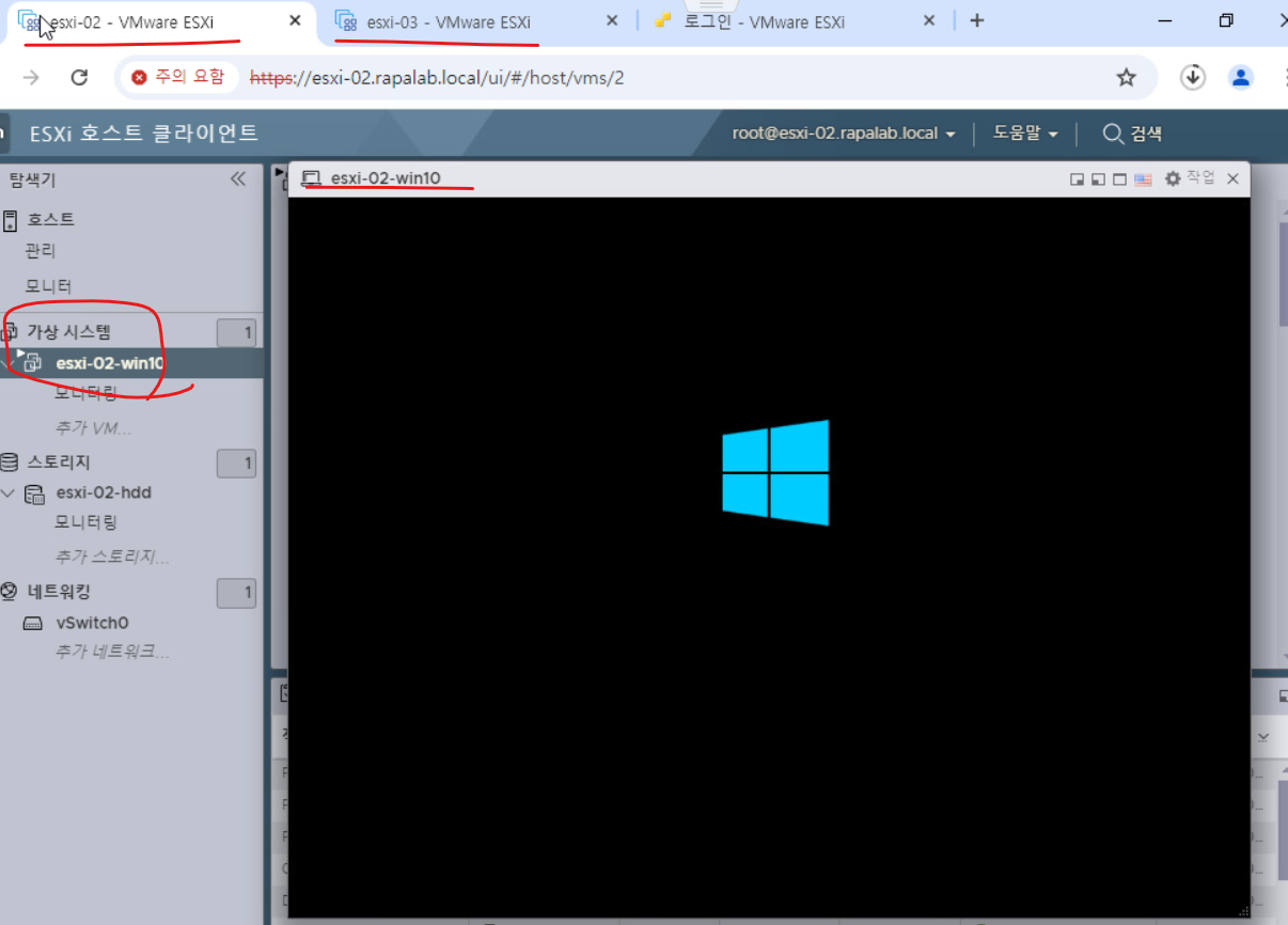 (12) ping test를 위해 ESXi-02, 03 윈도우 10 가상 머신의 방화벽을 모두 비활성화한다.