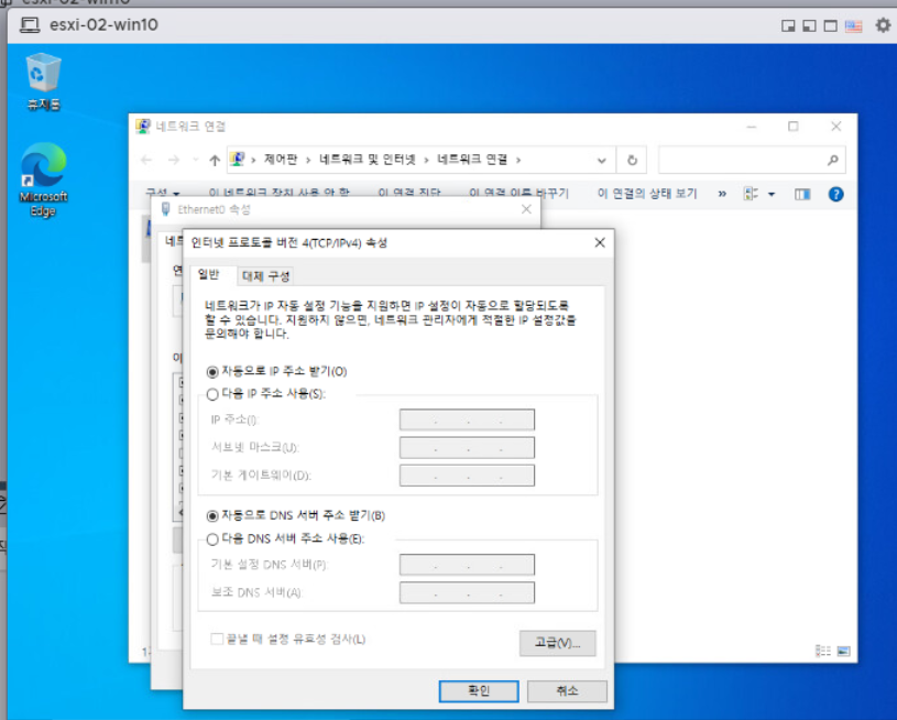 (10) 현재 ESXi-02 Win10의 가상 머신이며 주소 대역을 동적으로 할당받도록 둔다.