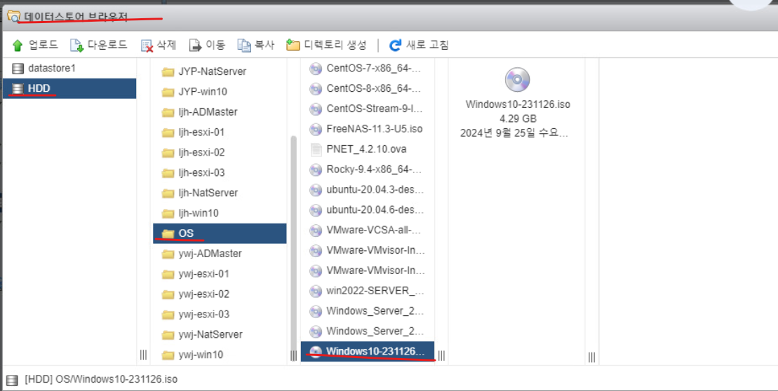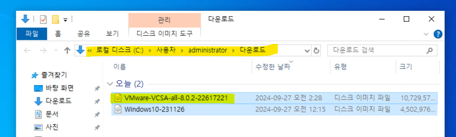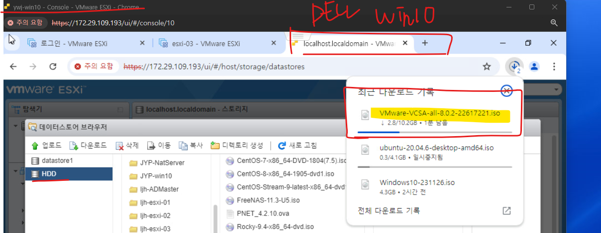 (15) 익일 vCenter 실습을 위해 DELL 서버의 가상 머신인 Windows 10 VMs에 VMWare-VCSA 이미지 파일을 다운로드 받아 놓는다.