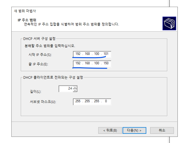 (8) 위의 직접 그린 토폴로지를 참고해서 주소 대역을 위와 같이 변경한다.