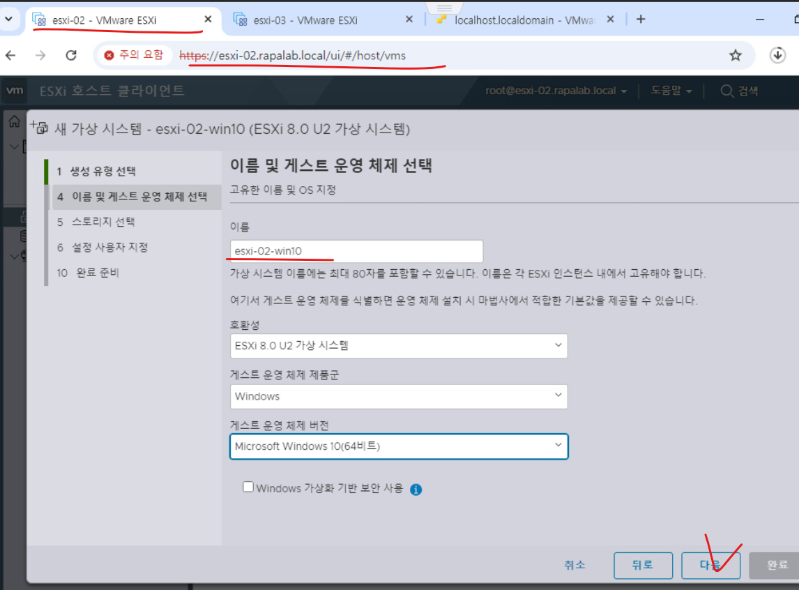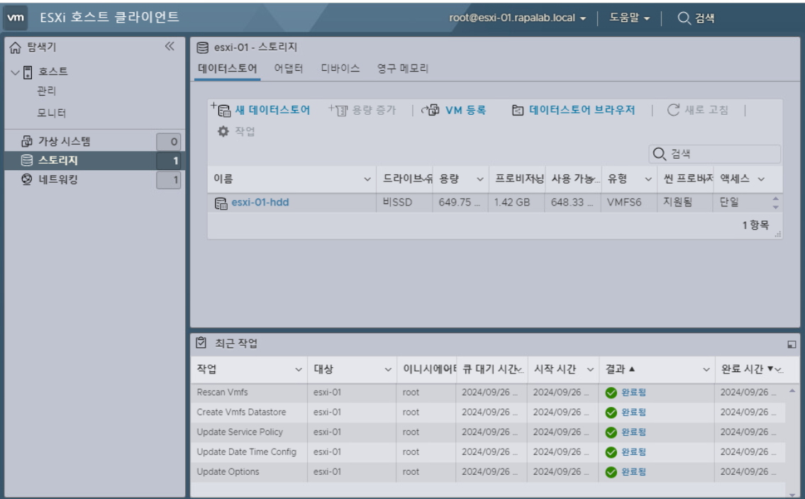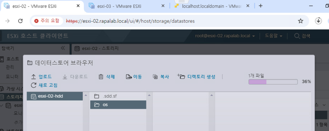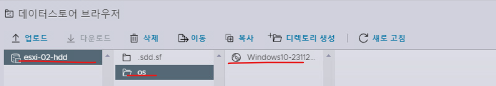 - 가상 머신의 파일을 저장할 데이터 스토어
