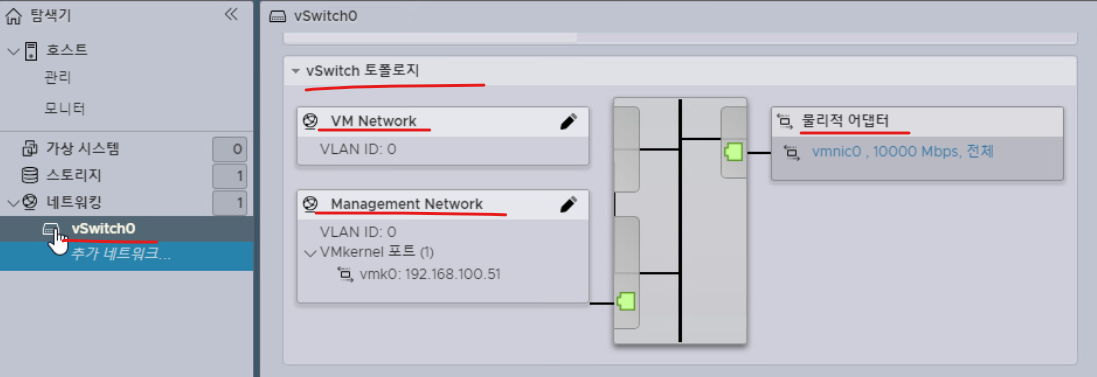 - DELL 서버 내부에서 호스트, 호스트 내부의 가상 머신을 관리하기 위한 개인 가상 스위치 생성