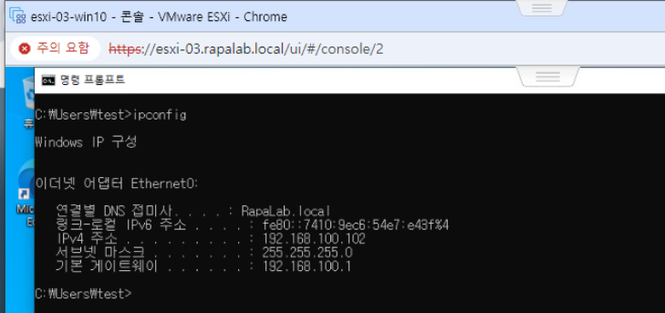 (11) ESXI-03 Win10을 확인해 보면 주소를 동적으로 받아온 부분이 확인된다.