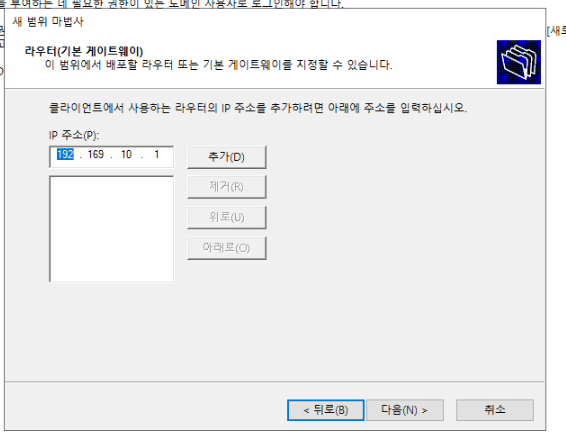 (9) 라우터(기본 게이트웨이) 주소 대역을 추가한다.