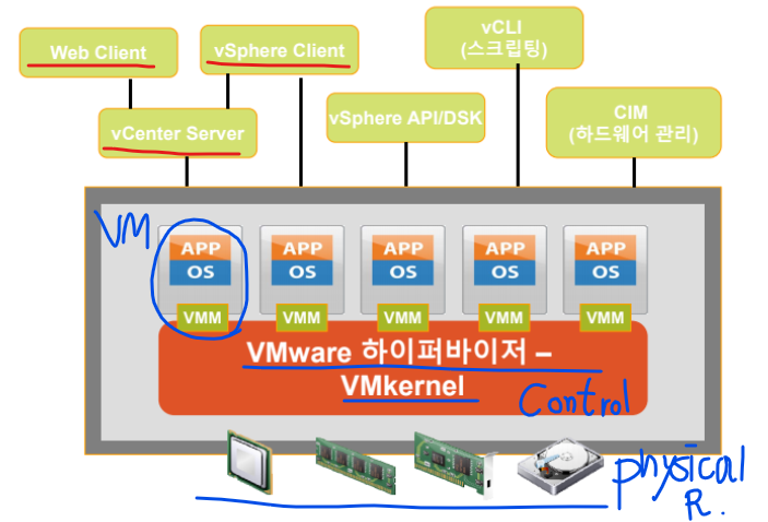 - VMware vSphere, VMware ESXi(HyperVisor), VMware vCenter