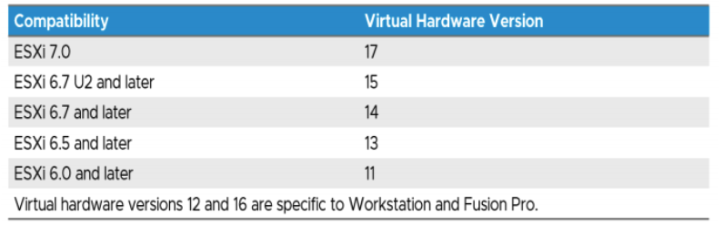 (1) 가상 하드웨어 버전의 특성