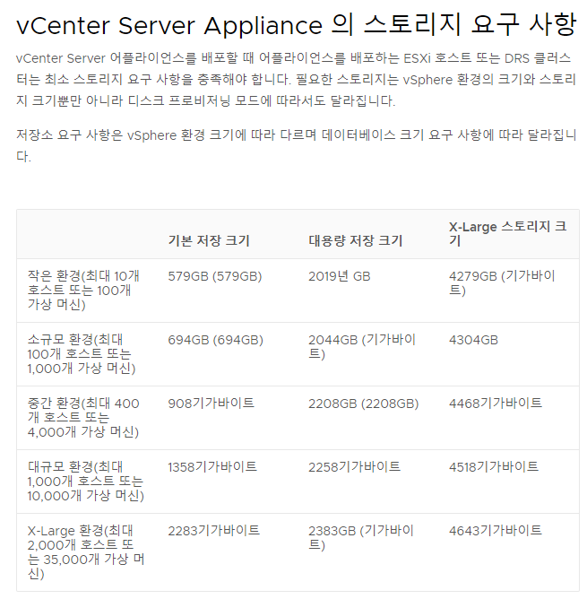 - VMware 제품군에서 지원하는 버전보다 이후 버전일 수 없다.