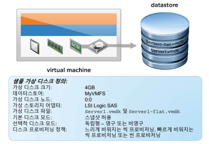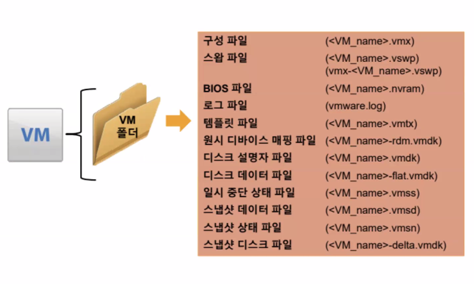 (1) 가상 머신을 생성하면 해당 가상 머신의 파일 시스템과 관련된 파일들이 호스트의 스토리지 데이터 스토어 내부 특정 디렉터리에 저장된다.