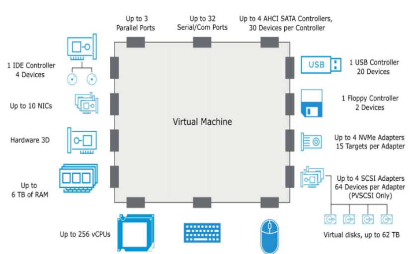(3) ESXi 7.0, 6TB의 최대 메모리 크기 : 게스트 운영체제의 보유 메모리 양에 따라 달라진다.
