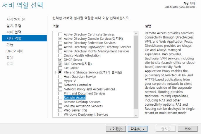 - NAT Server, AD Master Server 구성(AD Domain / DNS / 외부와의 통신을 위한 Remote Access Configuration)