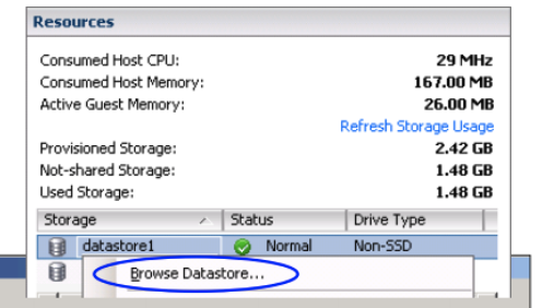 (2) Browse Datastore를 클릭해서 파일을 찾아볼 수 있다.