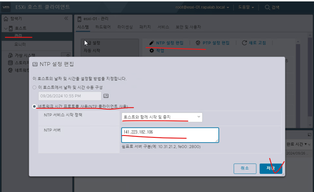 - NTP 설정(Service Enable)