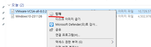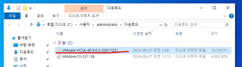 (11) 어제 실습에서 다운로드 받은 VCSA 이미지 파일을 확인한다.