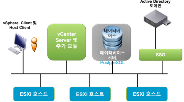 (3) vCenter Server 및 추가 모듈, 데이터베이스, SSO로 구성되어 있다.
