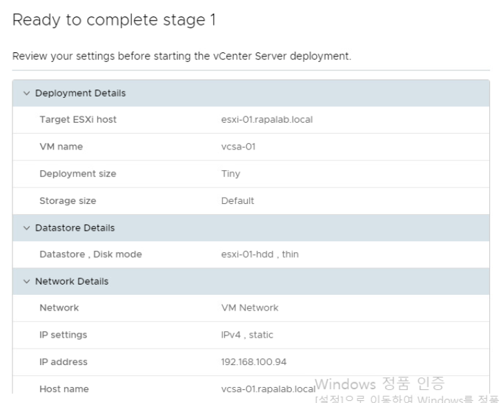 3-1. esxi-01 호스트 환경 체크 & vCenter Server Configuration