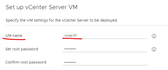 (18) vCenter Server의 이름 / 관리자 패스워드를 지정한다.