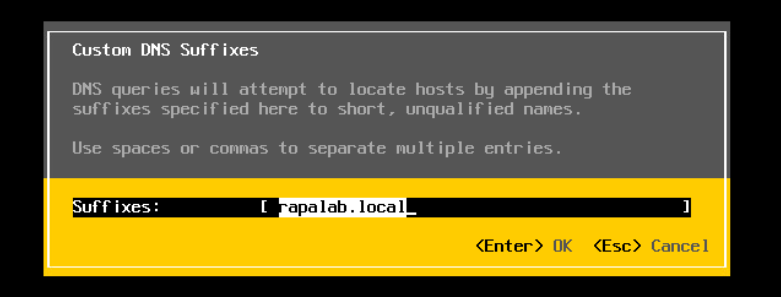 (2) esxi-01 주소 대역 / DNS 서버 설정 / DNS Suffixes 정보 체크