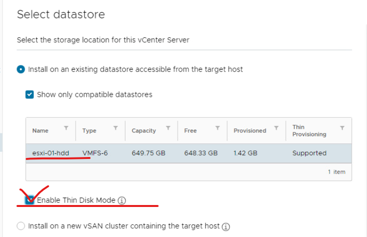 (20) 데이터 스토어 구성 방식을 확인하고 Thin Provisioning에 반드시 체크하고 넘어간다.