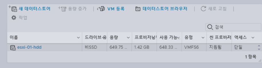 (3) 가상 머신을 생성하면 스토리지 내부 데이터스토어에 가상 머신과 관련된 정보들이 집합된 디렉터리가 생성된다. (디렉터리 내부 여러 파일들이 존재)