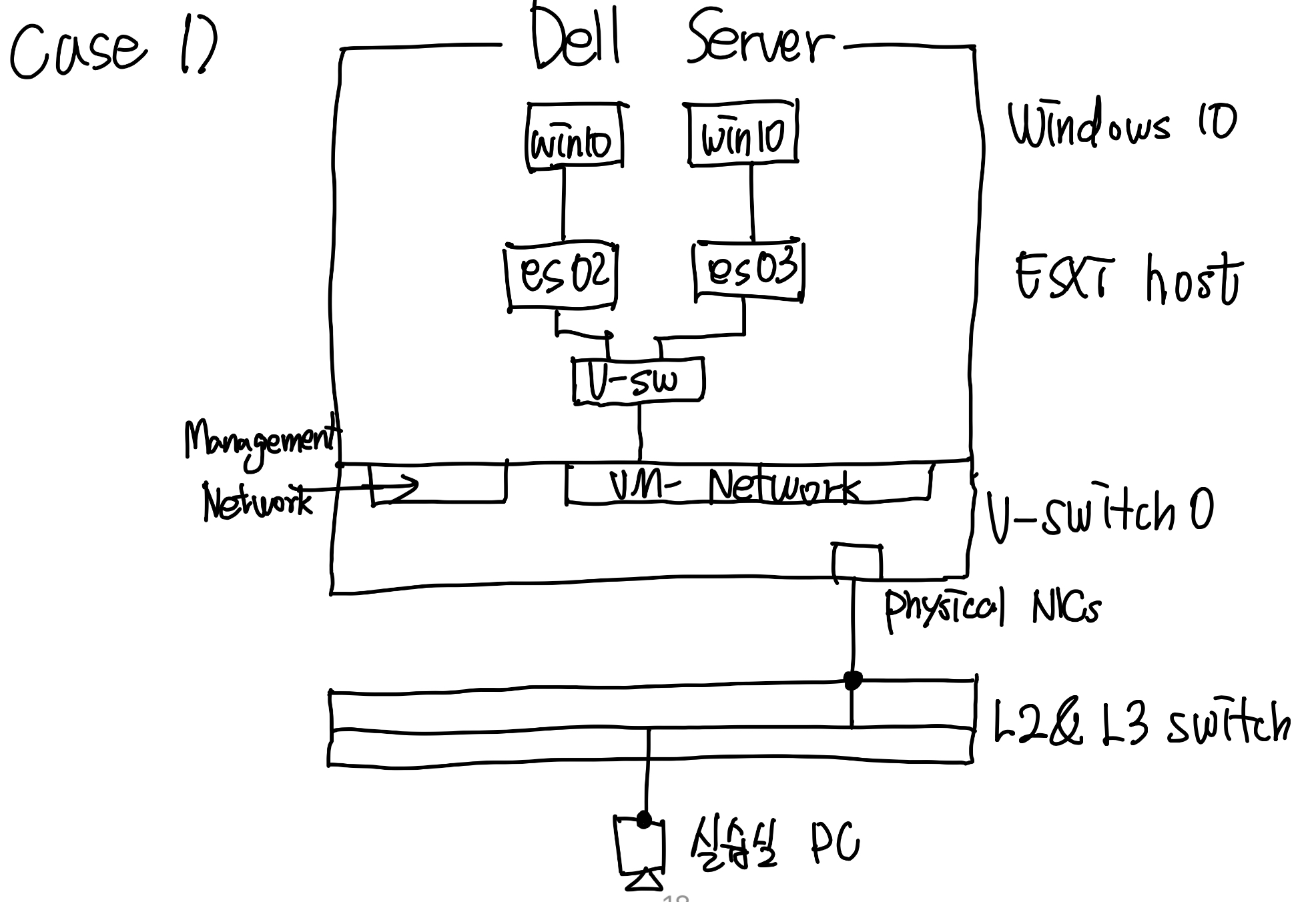 (1) 해당 케이스는 본인의 실습실 PC와 ESXi 호스트 내부 각 Windows 10 VM과 통신해야 한다.