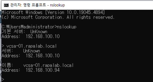 (6) vCenter Server를 구성하기 전에 현재 실습 토폴로지를 보면 vCenter에 대한 도메인이 하나 더 존재하는 것을 확인할 수 있다. (해당 새로AD Domain에 등록하지 않는다)