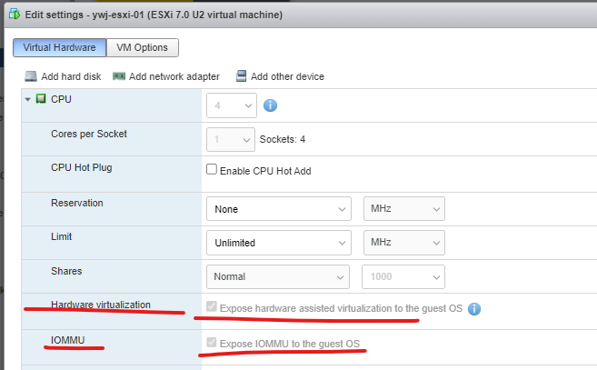 (5) ESXi-01 호스트의 하드웨어 가상화 여부를 체크한다.