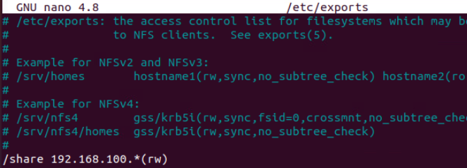 (2) nano /etc/exports 명령으로 에디터에 접속해서 위와 같은 텍스트를 추가한다.