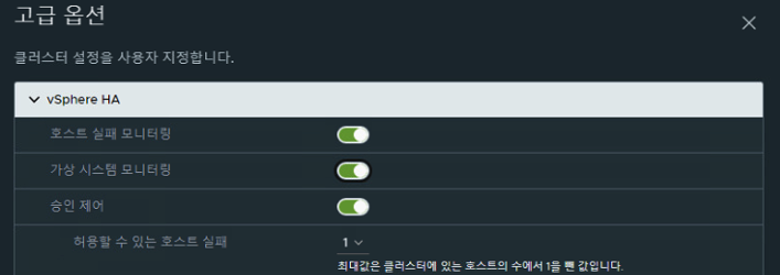 - vSphere HA 승인 제어를 사용하지 않는 경우