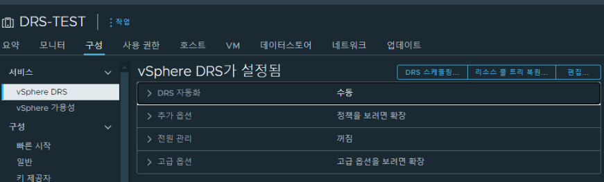 (1) vSphere DRS 설정 옵션