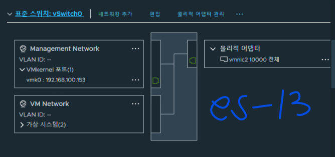 (3) ESXi-13 호스트에 대해서도 가상 스위치 구성을 완료했다.