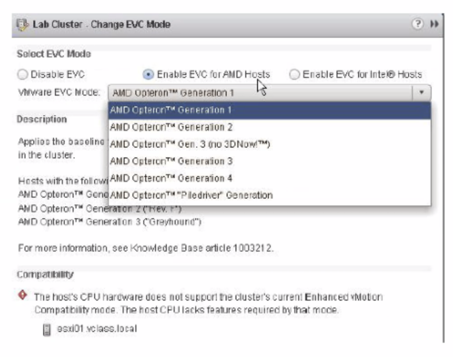 (2) 기준은 클러스터의 모든 호스트에서 지원하는 CPU 기능 세트이다.