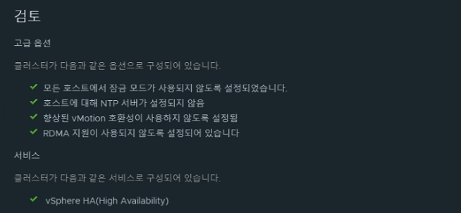 - 클러스터에 ESXi 호스트를 추가, 클러스터 내부에 HA 환경을 구성했다.