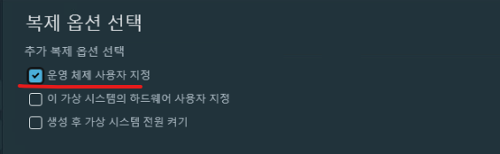 (12) 운영체제 사용자 지정 옵션을 선택해야 이전에 생성했던 VM 템플릿 파일을 사용할 수 있다.